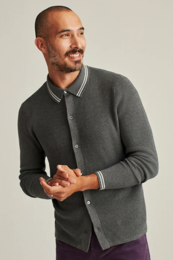 La nostra polo Cabana a maniche lunghe sembra un maglione di cotone e ha l’aspetto di una cabana retrò. Un look elegante e casual per le temperature più fredde. Acquista ora!