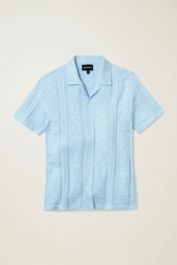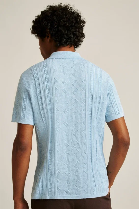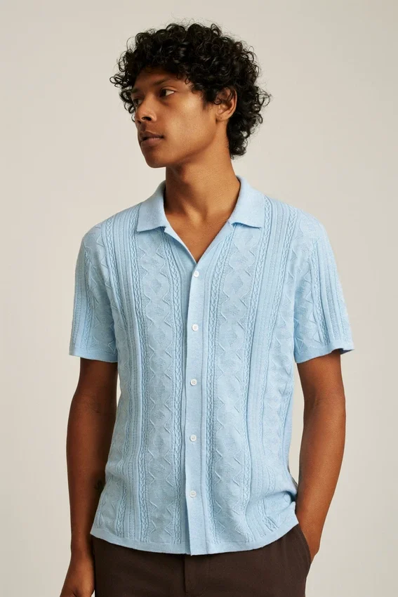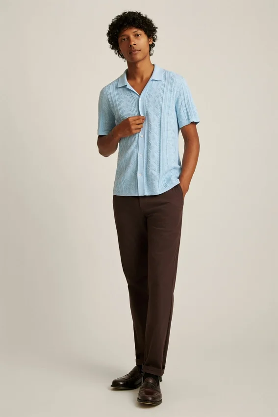 Filato di cotone morbido e traspirante con trama a finta treccia su tutta la superficie per un look alla moda | Abbottonatura completa