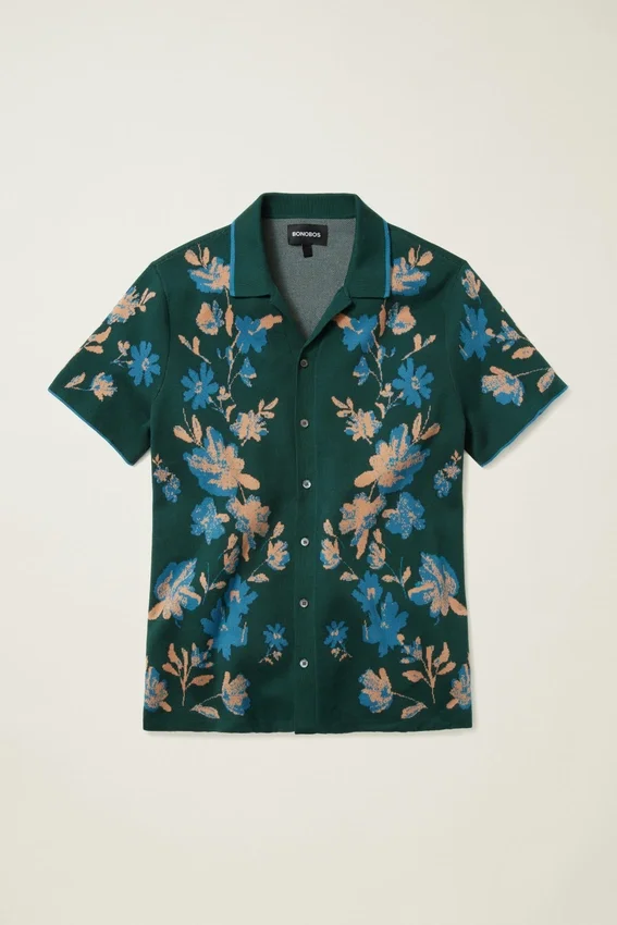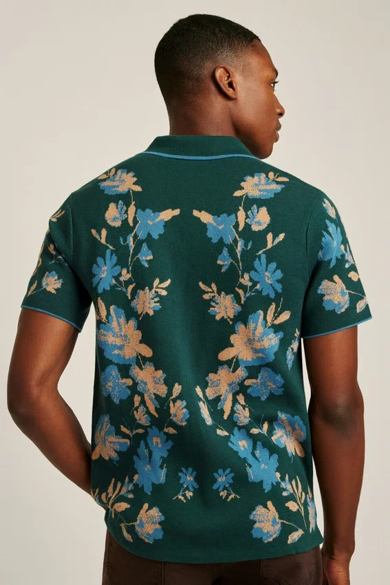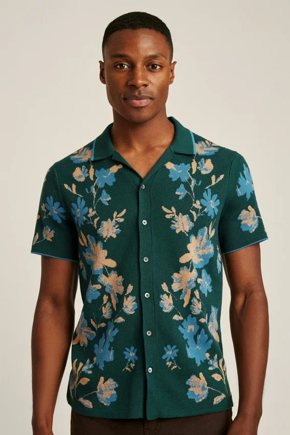 Filato di cotone morbido e traspirante con motivo floreale ingegnerizzato per un look alla moda | Abbottonatura completa