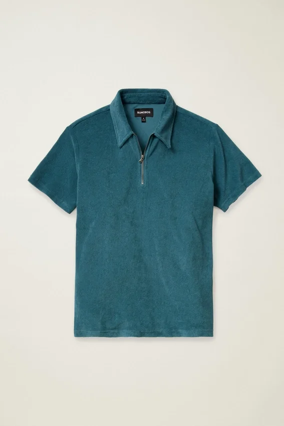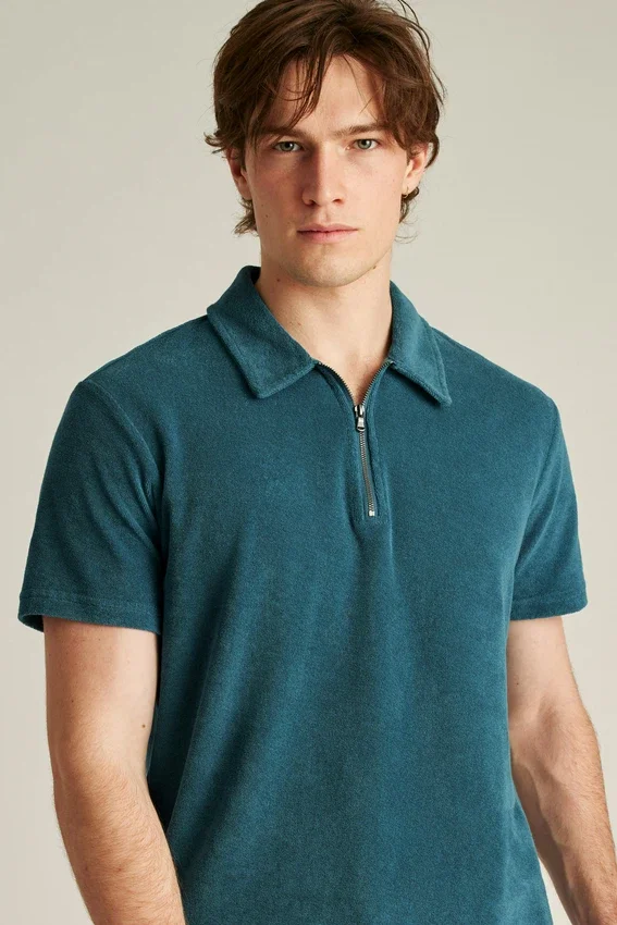 Tessuto in spugna testurizzato con apertura con cerniera sul collo per un look casual e alla moda