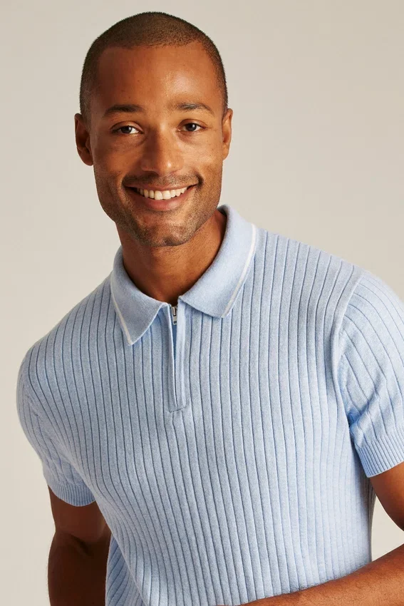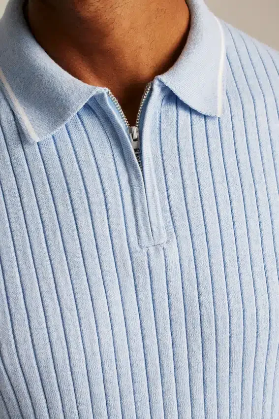 Misto cotone rinfrescante | Ampie coste su tutto il capo, bordino sul colletto e chiusura con cerniera sul collo per un look sportivo e retrò