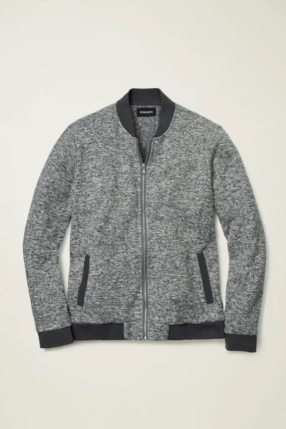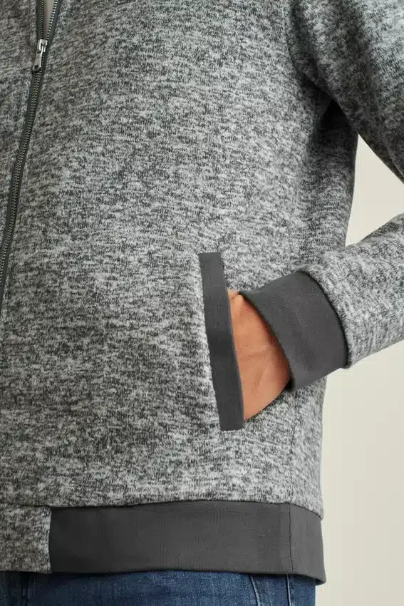 Giacca bomber in pile polare super morbido e avvolgente | Colore melange | Tasche, collo bomber, Chiusura con cerniera