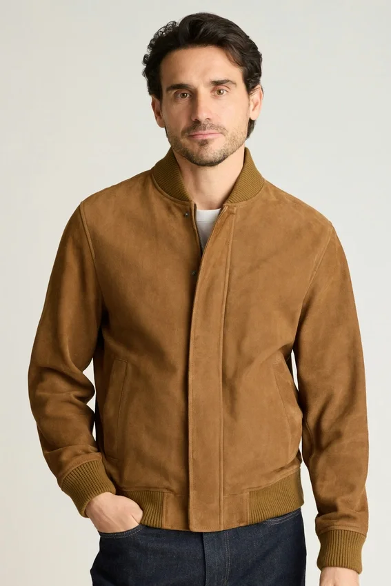 Giacca bomber in pelle scamosciata