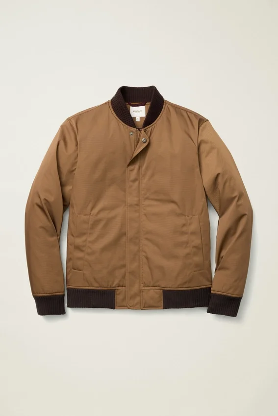 Il Filled Boulevard Bomber di Bonobos è un capo resistente alla pioggia con leggero isolamento. Una giacca bomber da uomo imbottita progettata per garantire comfort, calore e vestibilità in tutte le stagioni.