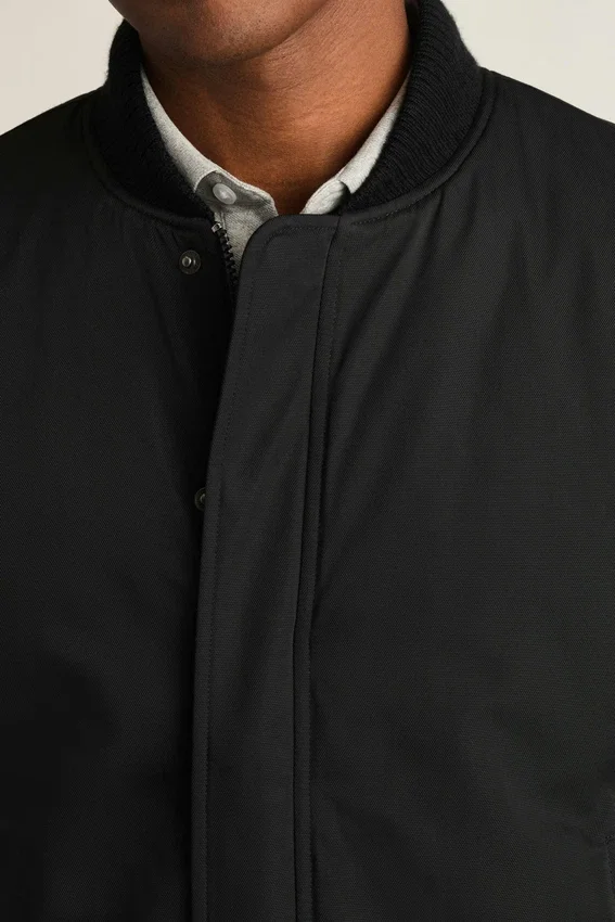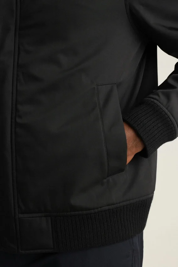 Resistente all’acqua | Collo, polsini e orlo a costine | Patta antivento con bottoni a pressione | Chiusura frontale con zip | Tasche a filetto con bottoni a pressione in vita | Interno completamente foderato e leggermente trapuntato | Tasche interne | Passante per appendere
