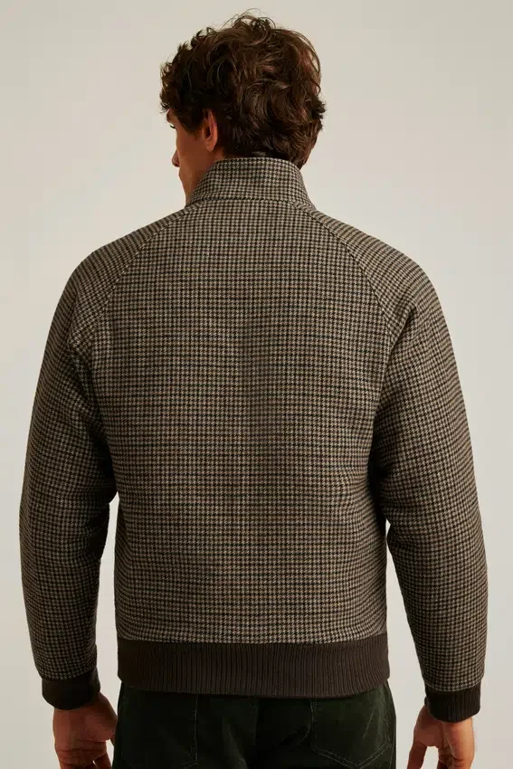 Realizzata in lana italiana | Bordi a costine su polsini, orlo e interno del colletto | Chiusura con zip a doppio cursore | Maniche raglan | Colletto alto con linguetta abbottonata | Tasche con patta in vita con chiusura a bottone | Tasca interna | Passante | Interno trapuntato completamente foderato