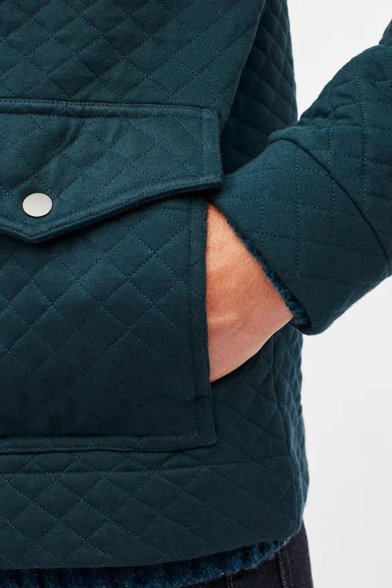 Tessuto in pile trapuntato in raffinato stile bomber, perfetta per essere indossata sopra altri capi