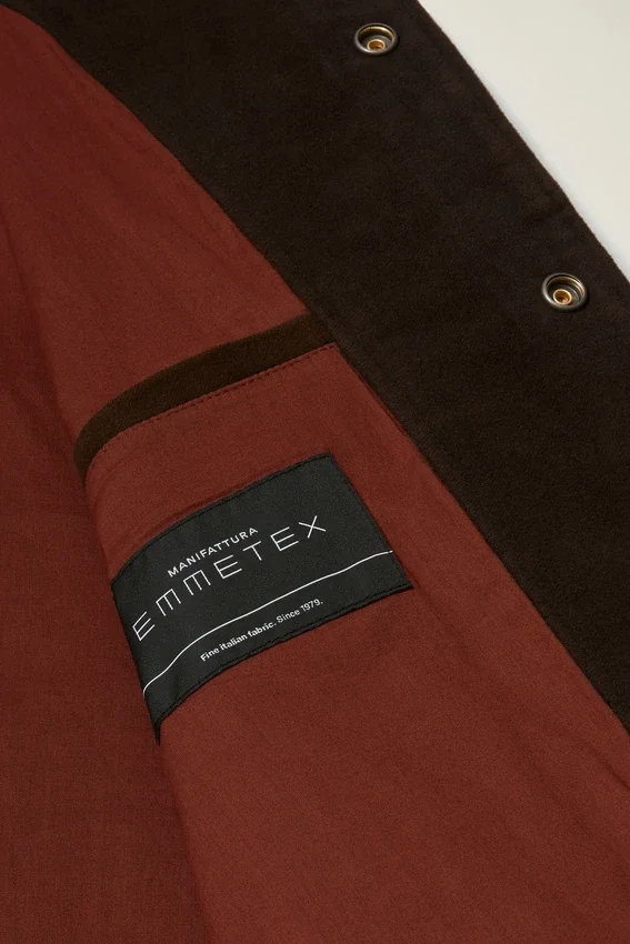 Realizzato in moleskin italiano | Bordo a costine in maglia su collo, polsini e orlo | Chiusura con bottoni a pressione | Tasche in vita | Tasca interna | Passante per appendere | Interno trapuntato completamente foderato