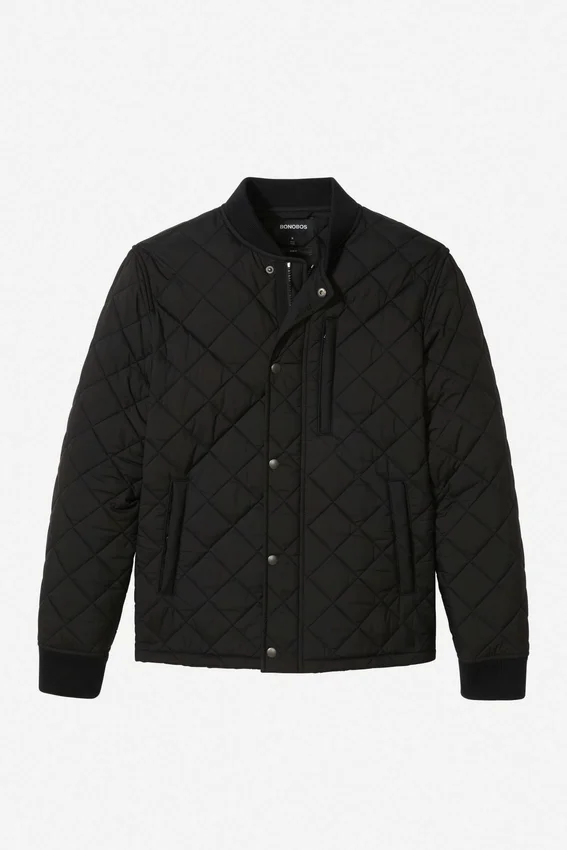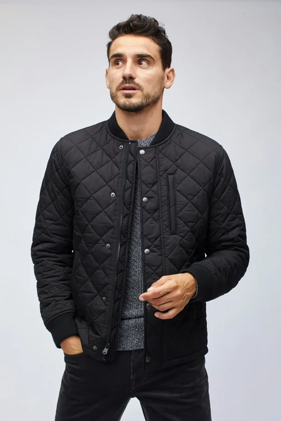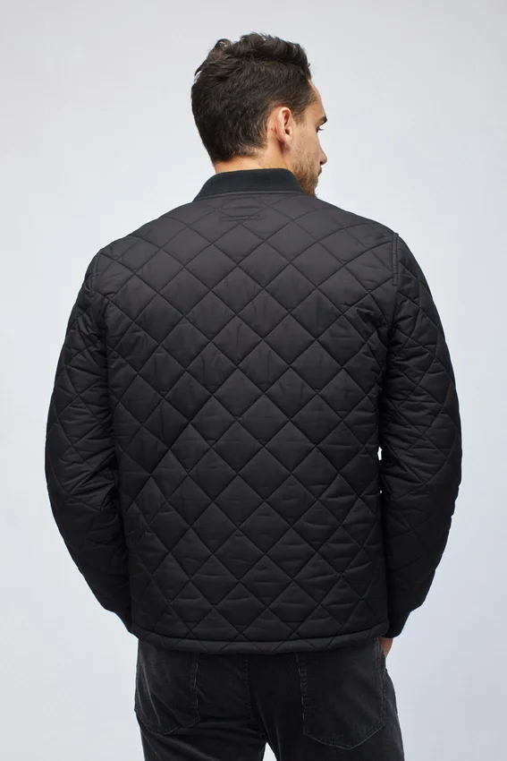 Bordo a costine su collo e polsini | Orlo aperto | Motivo trapuntato a rombi | Tasca sul petto con bordino esterno | Tessuto idrorepellente