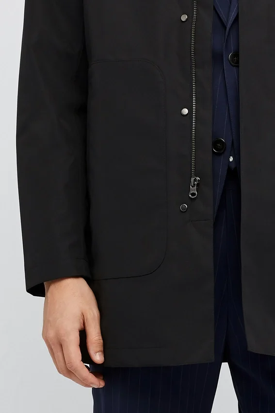 Chiusura frontale con zip nascosta e bottoni a pressione | Tessuto impermeabile | Cuciture sigillate | Tasche applicate sul davanti con bordino singolo | Interno semi-foderato in rete | Cuciture completamente sigillate | Bottoni a pressione sui polsini