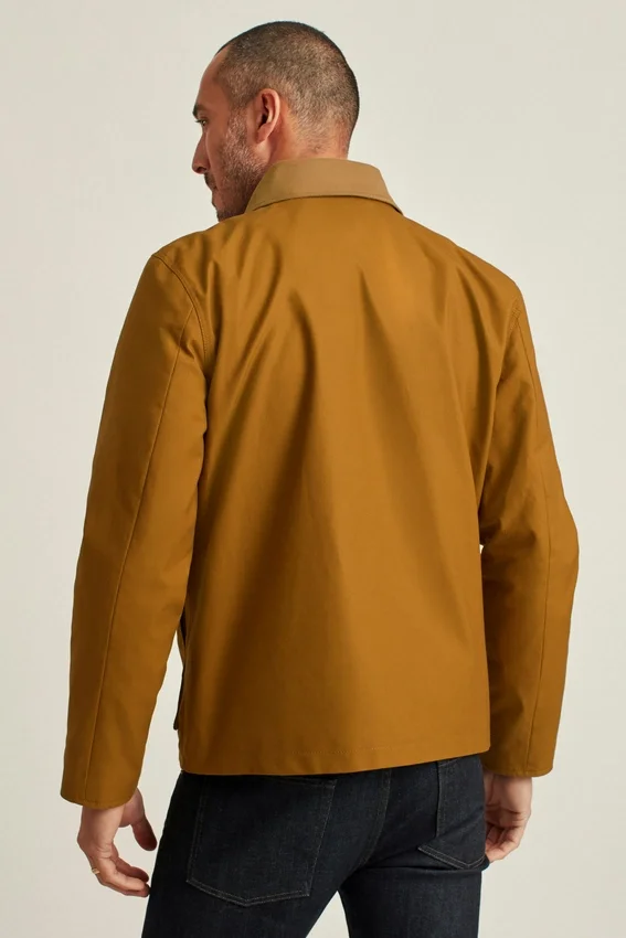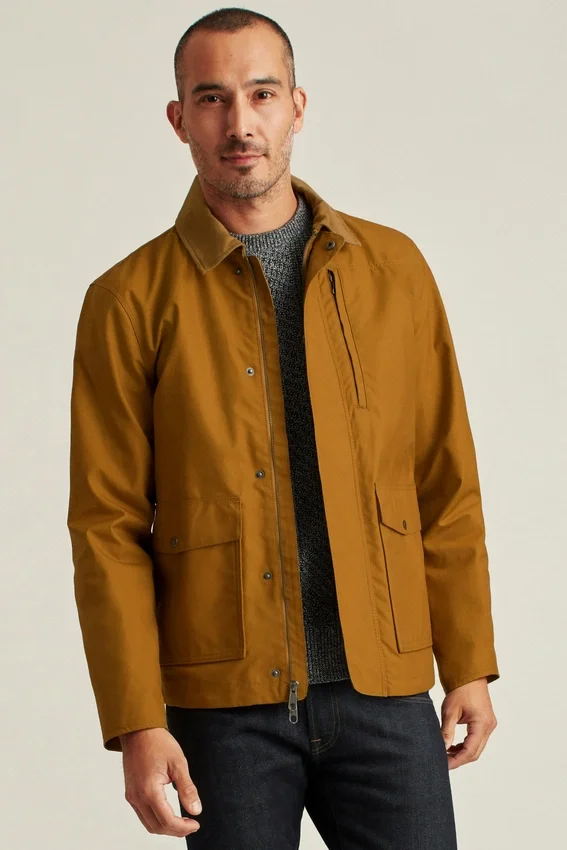 Cotone cerato | Tasche applicate con chiusura a bottone a pressione | Tasca sul petto con cerniera | Collo superiore in morbida fustagno | Completamente foderata | Tasca interna | Chiusura frontale con cerniera e patta antivento