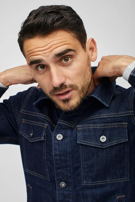 Il modello è alto 188 cm, ha un torace di 102 cm e indossa una M. Vestibilità: questa giacca in denim è progettata per una vestibilità Slim Fit ma confortevole. Scegli una taglia in meno se preferisci una vestibilità più aderente.