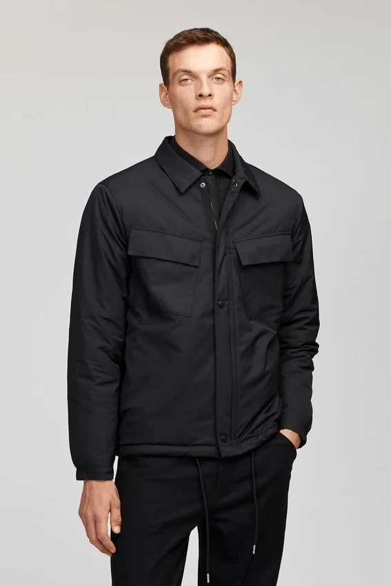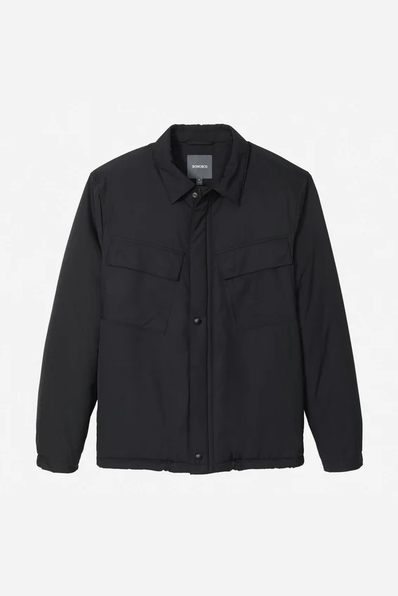 Tasche applicate sul petto con patta | Tasche laterali | Chiusura con bottoni a pressione e cerniera | Cordino in fondo | Tasche interne | Imbottitura di peso medio su maniche e corpo