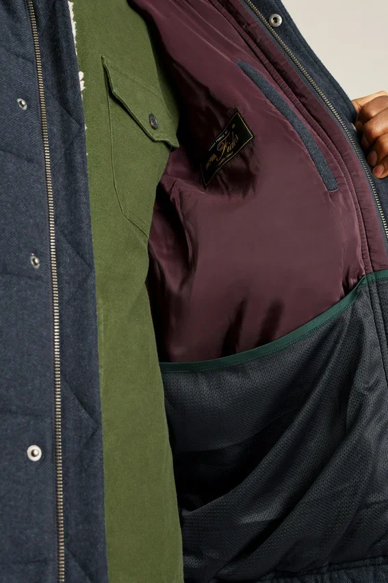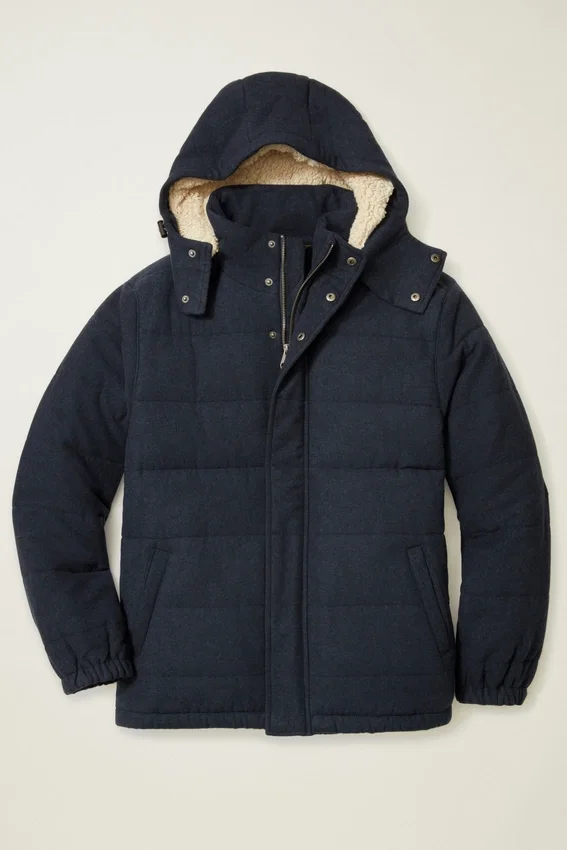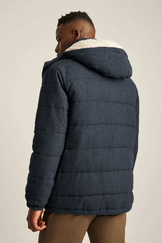 Piumino in lana italiana che presenta lana italiana di alta qualità idrorepellente con imbottitura in Primaloft® per un calore extra. Cappuccio staccabile per una maggiore versatilità.