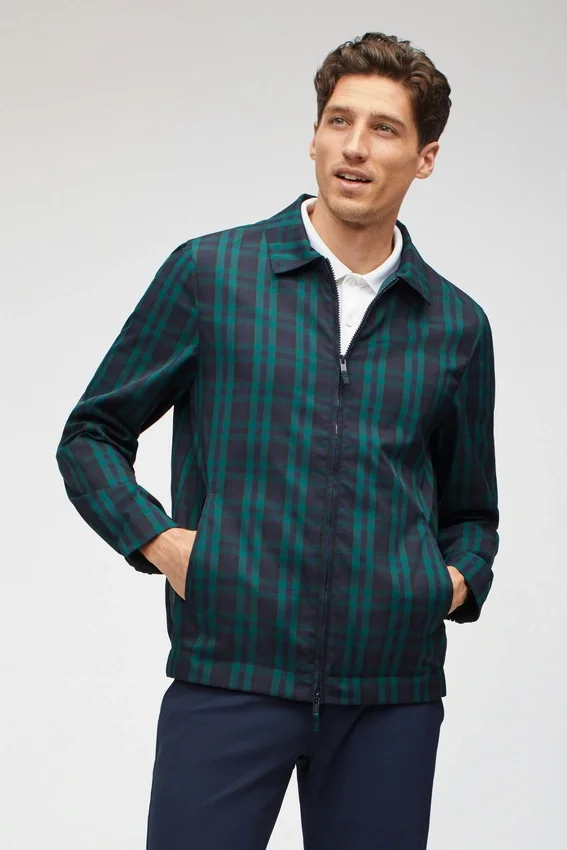 La giacca a vento perfetta per giocare a Golf all’aperto. Plaid verde e blu navy, cerniera frontale centrale a vista e tasche anteriori. Slim Fit. Spedizione gratuita!