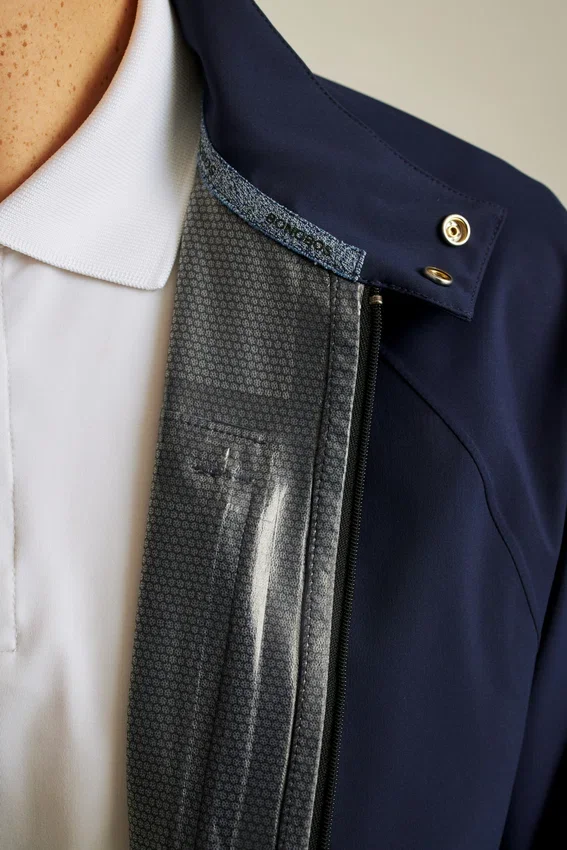 Questa giacca traspirante e resistente all’acqua offre stile e prestazioni sia sul campo da golf che fuori.