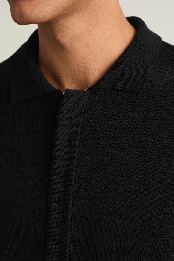Colletto a camicia | Zip frontale integrale | La cucitura Milano conferisce struttura e peso | Assorbe naturalmente l’umidità e regola la temperatura | Traspirante e resistente agli odori