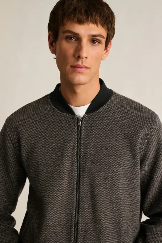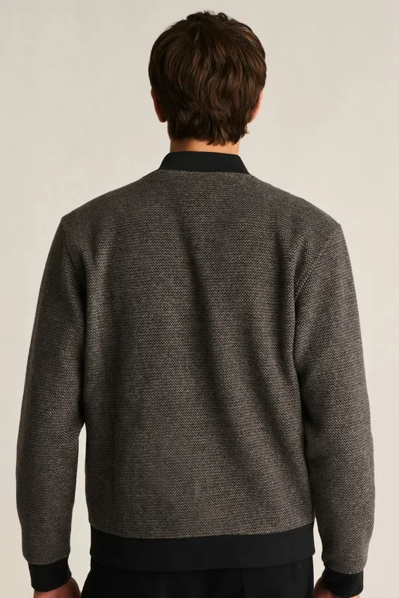 Unisce lo stile classico del bomber al comfort caldo e versatile di un maglione.