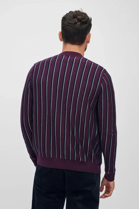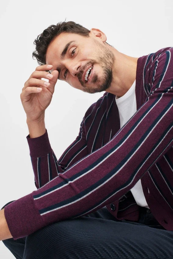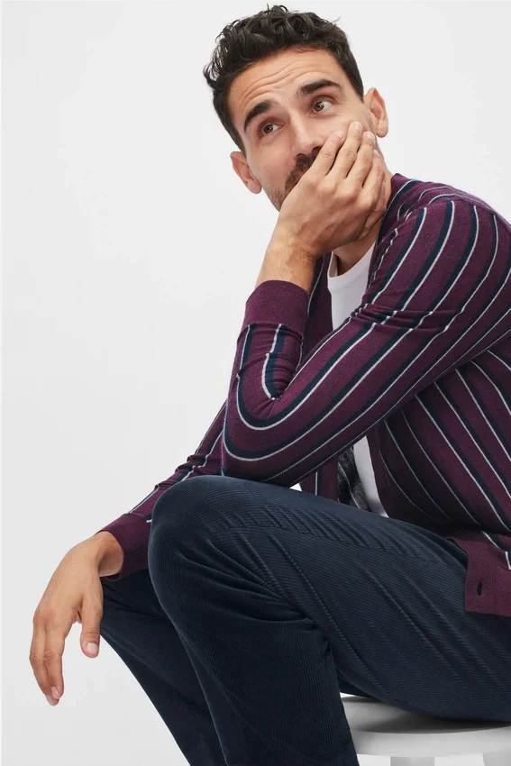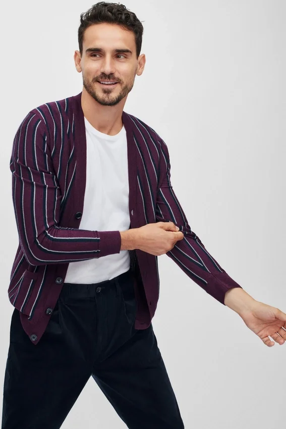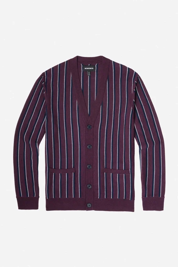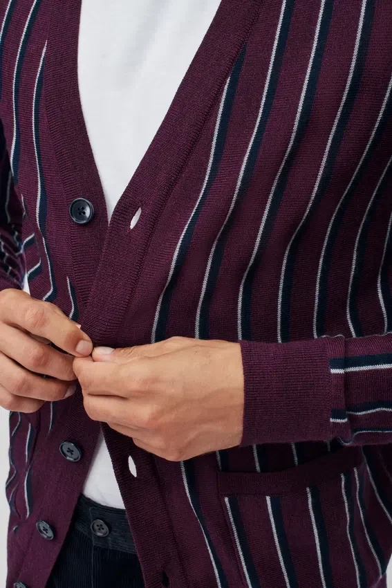 Morbida e lussuosa lana merino in un cardigan a righe verticali per un look retrò e vintage