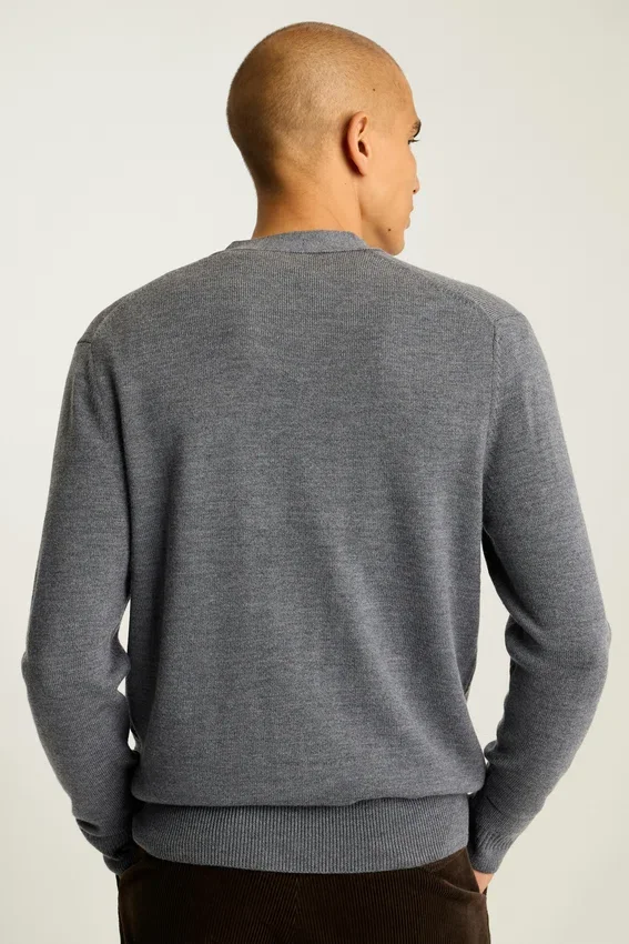 Un maglione in 100% lana che non richiede il lavaggio a secco. Peso perfetto per essere indossato facilmente a strati.