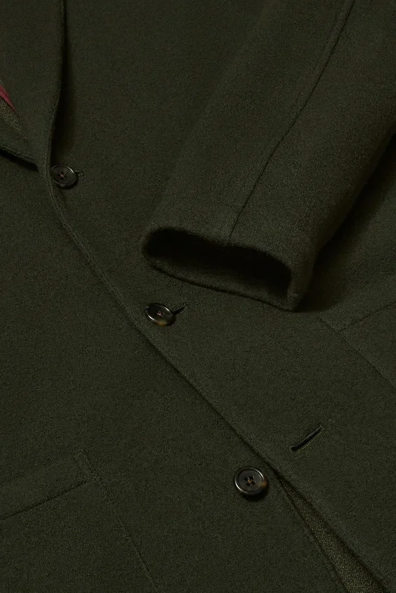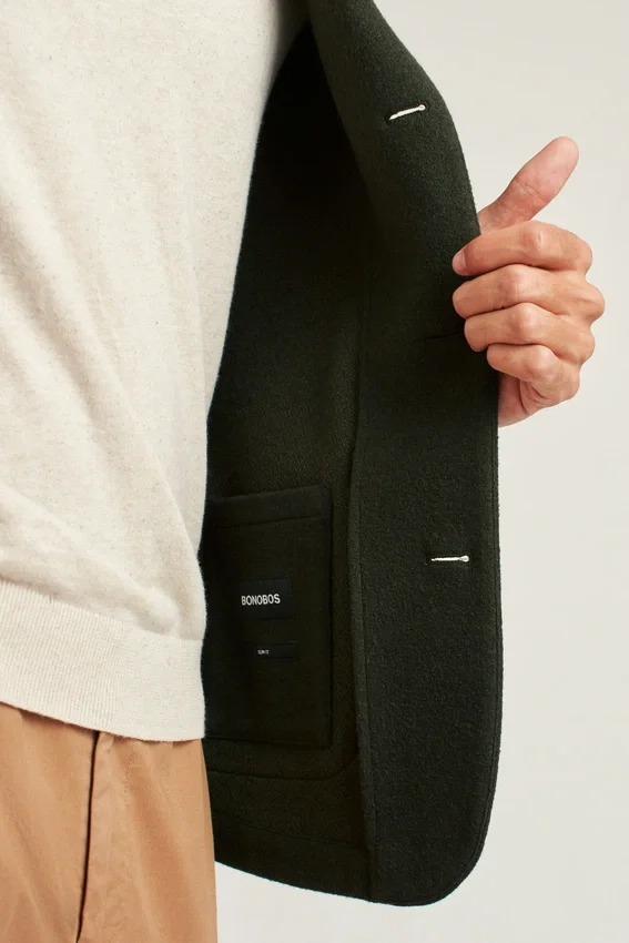 Monopetto | Revers a V | Tasche applicate in vita | Interno Unconstructed con bordino sulle cuciture | Tasca interna applicata | Morbida costruzione sartoriale | Passante interno