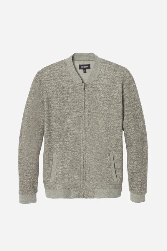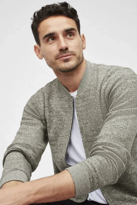 Pile melange spazzolato super morbido con bordi a costine | Dettaglio colletto bomber