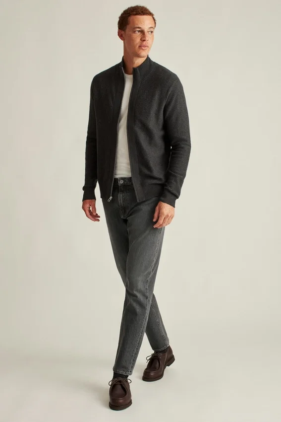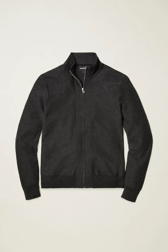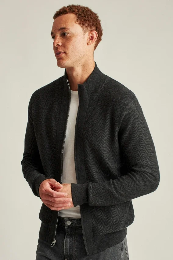 Lussuosa e traspirante. Una giacca con zip integrale sofisticata e perfetta per la mezza stagione.
