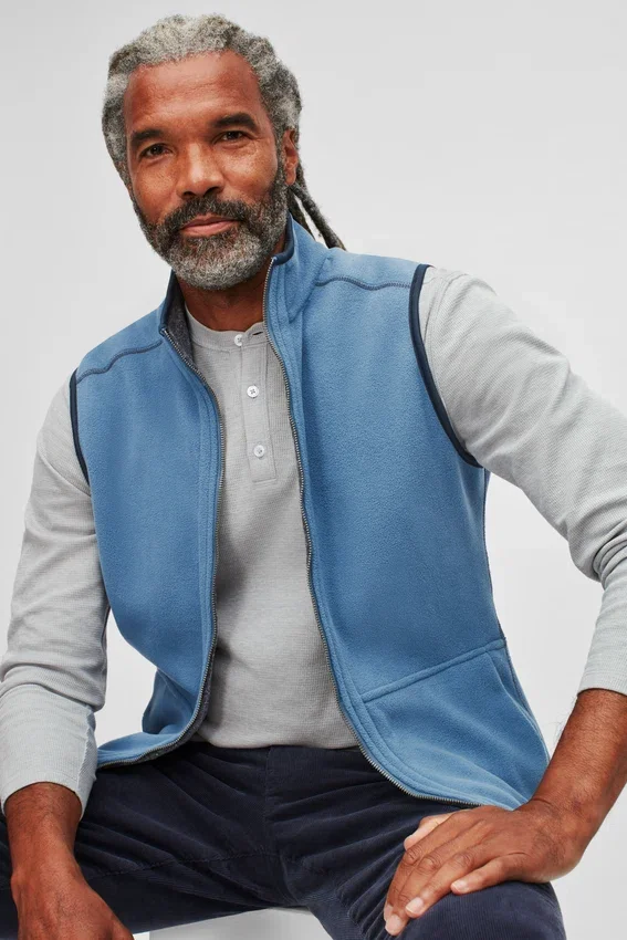 Tessuto in pile polare reversibile a maglia con bordi in tessuto e tasche funzionali su entrambi i lati