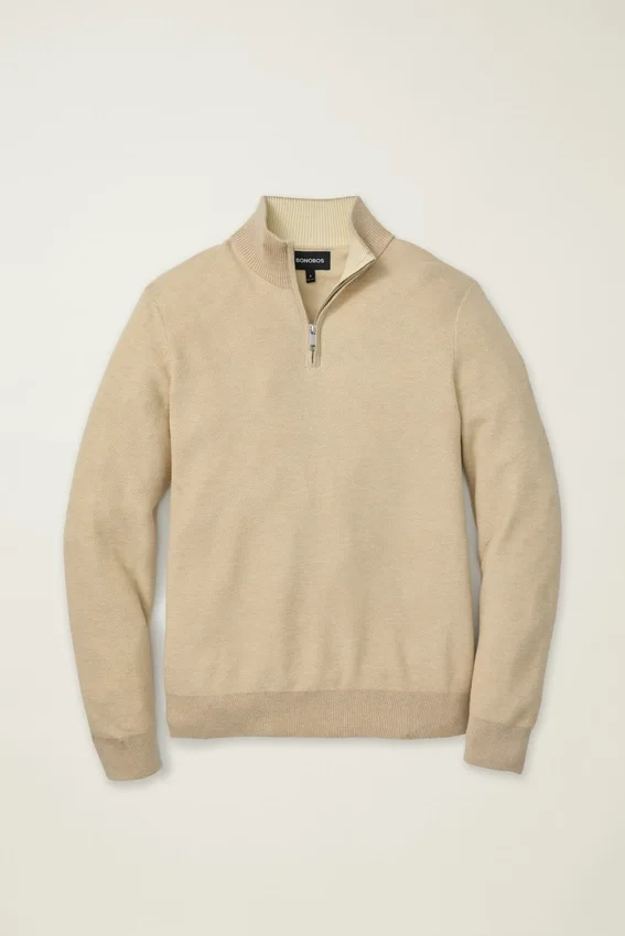 Maglia in cotone e cashmere lavabile con zip a un quarto