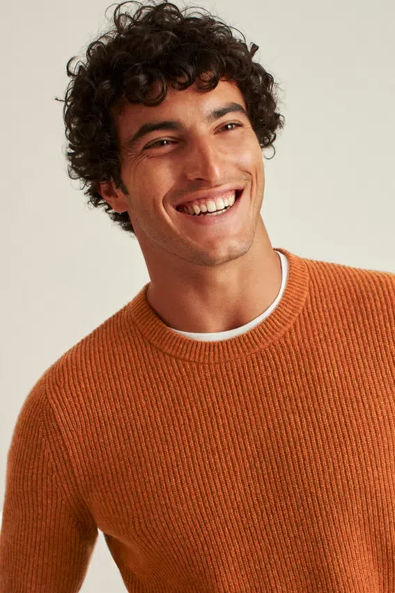 Maglione a collo rotondo con lavorazione a coste