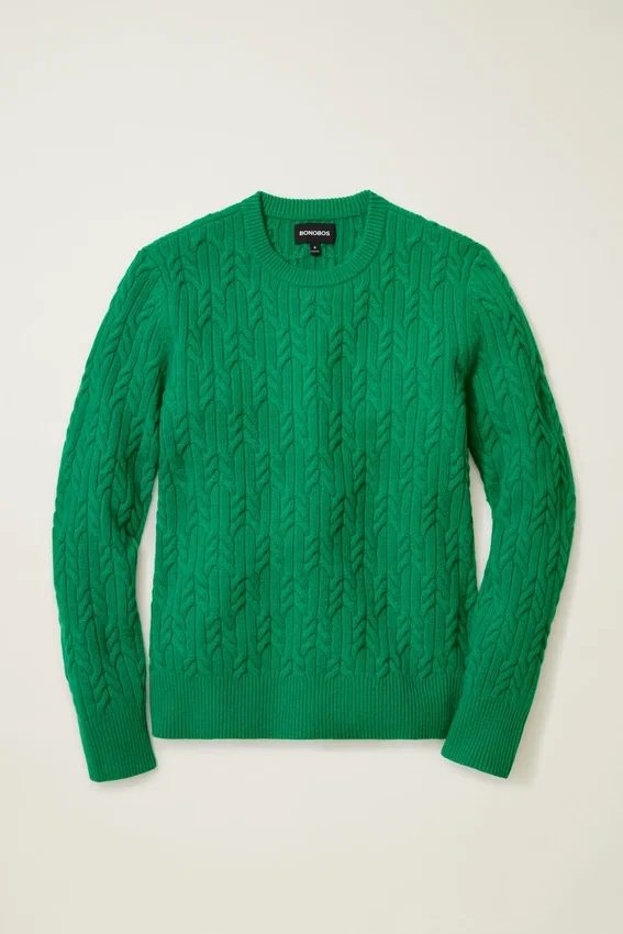 Filato misto lana avvolgente con lavorazione a trecce su tutta la superficie. Bordi a costine.