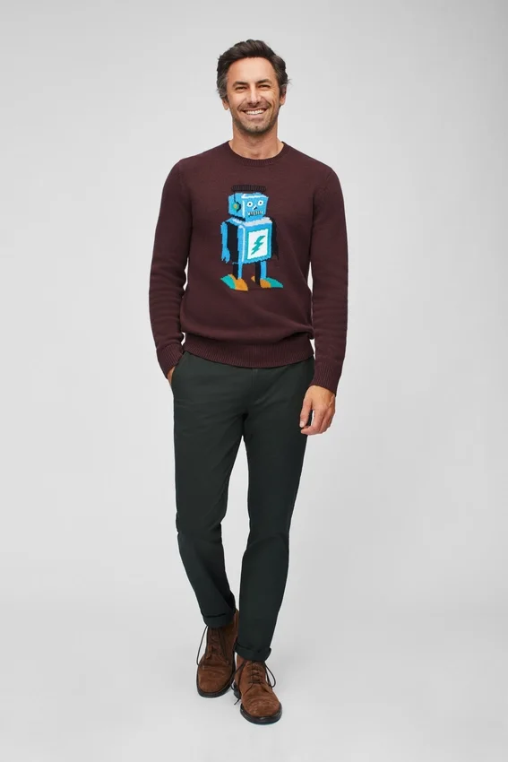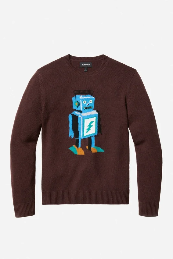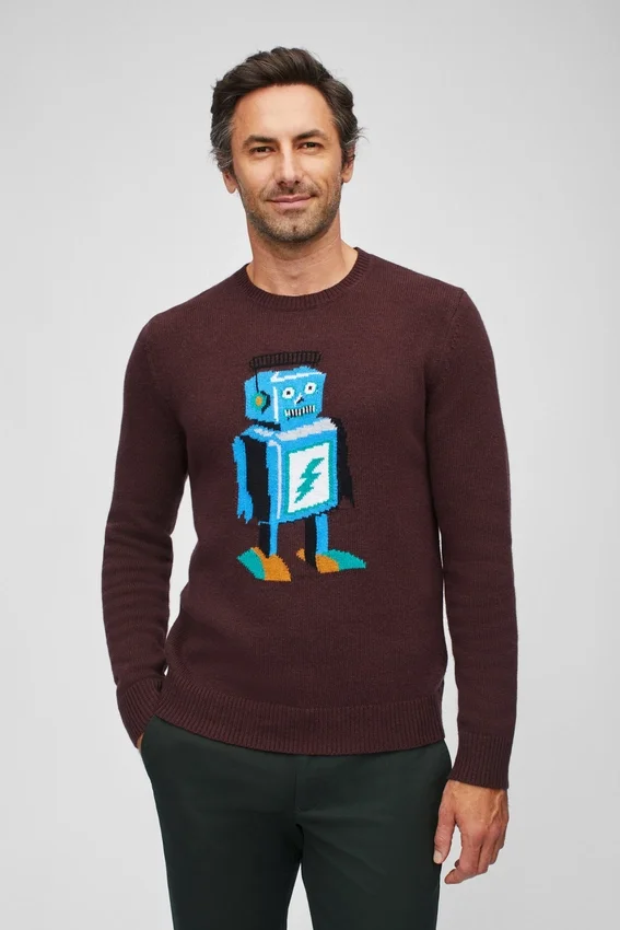 Morbido filato misto lana con motivo robot integrato sul petto