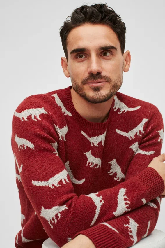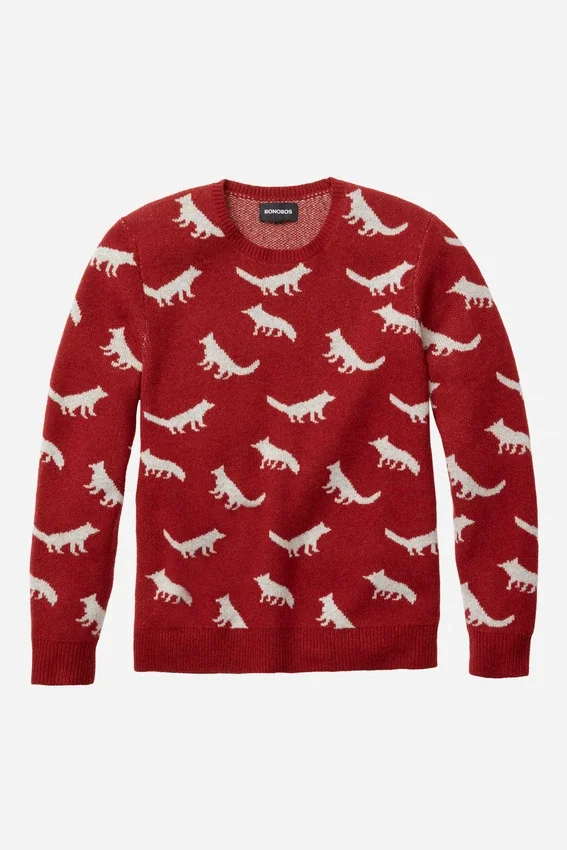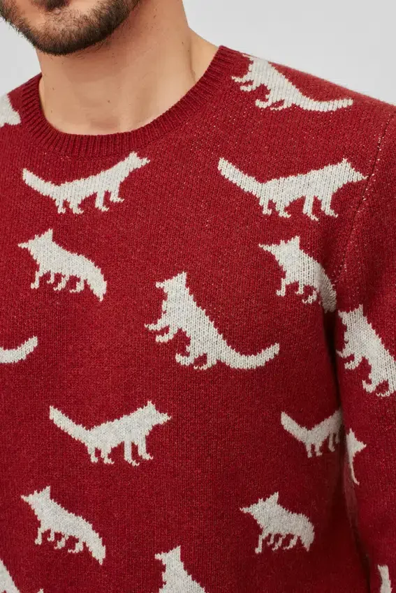 Filato merino morbido e lussuoso con motivo a volpe su tutta la superficie