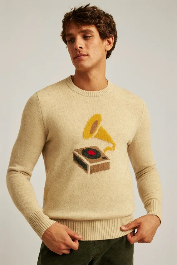 Filato in misto lana avvolgente con grafica originale | Colore a contrasto all’interno del collo posteriore