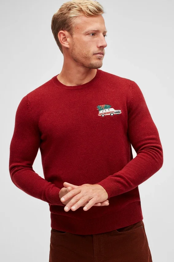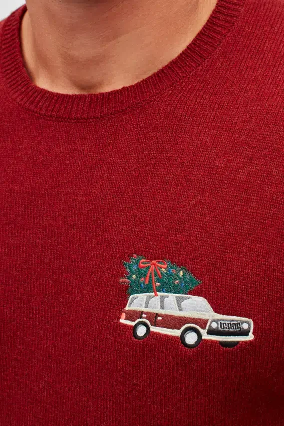 Lussuoso filato di lana merino morbida con ricamo di un’auto sul petto