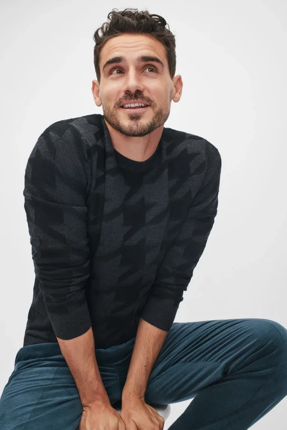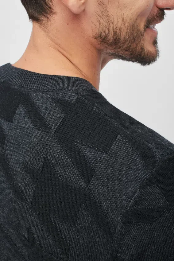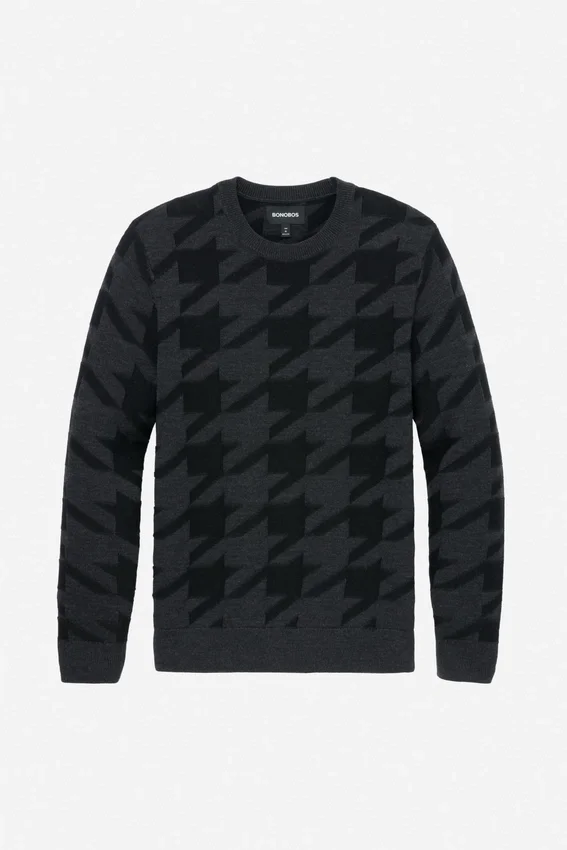 Maglione a girocollo in lana merino con motivo pied-de-poule