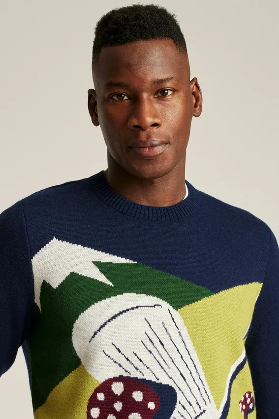 Filato misto morbido e confortevole con grafica originale su tutta la superficie | Bordi a contrasto sui polsini | Bordi a costine