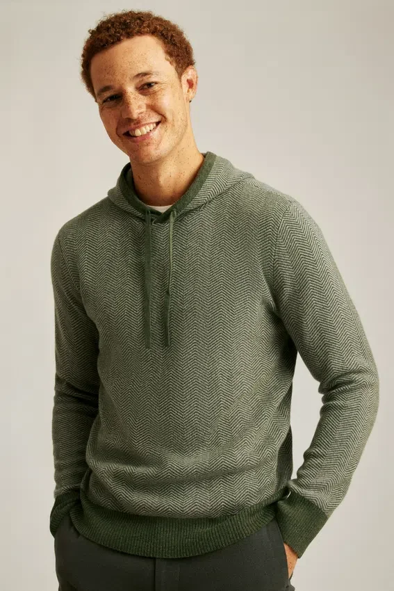 Maglione con cappuccio a spina di pesce
