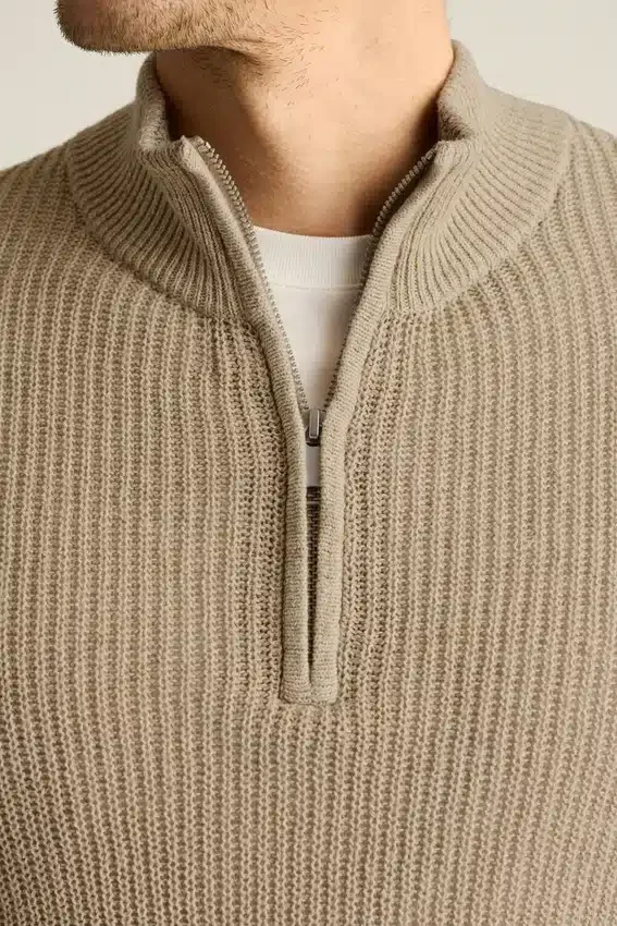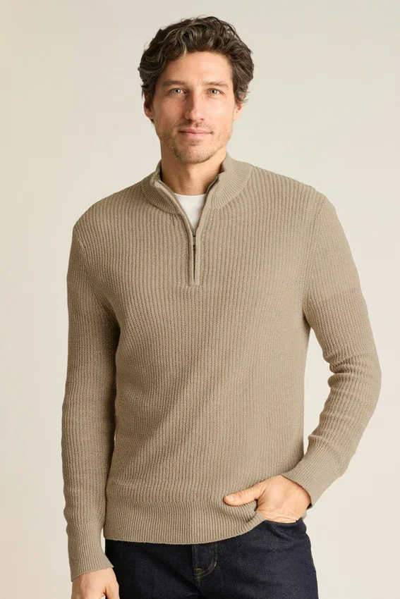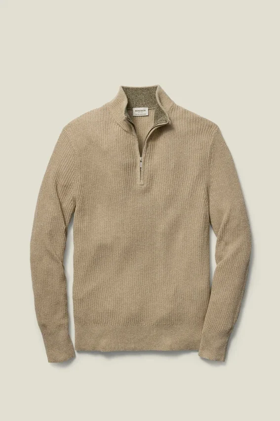 Maglione da uomo con zip a un quarto di Bonobos | Lussuoso cotone e lino italiano