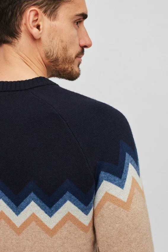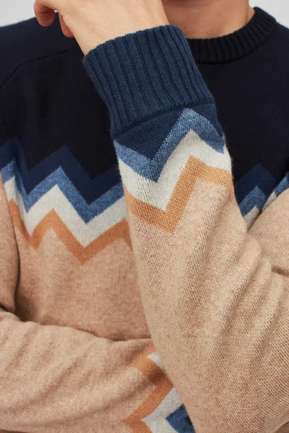 Filato misto lana leggero con motivo a zig-zag sul corpo con maniche raglan