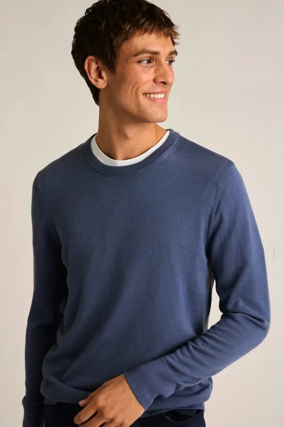 Lana merino leggera | Corpo in jersey | raffinato collo a costine 1×1 | Polsini e orlo più alti a costine 1×1 | Striscia a contrasto nascosta sul bordo interno del collo