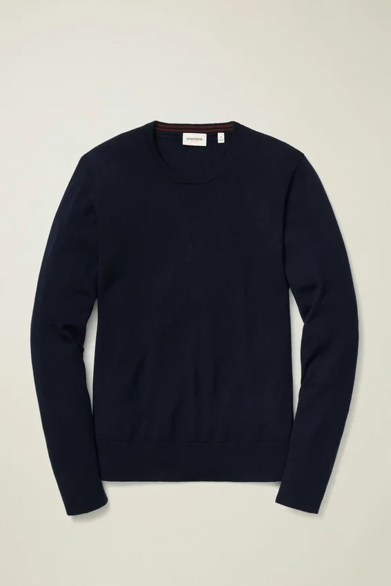 Lana merino leggera | Corpo in jersey | raffinato collo a costine 1×1 | Polsini e orlo più alti a costine 1×1 | Striscia a contrasto nascosta sul bordo interno del collo