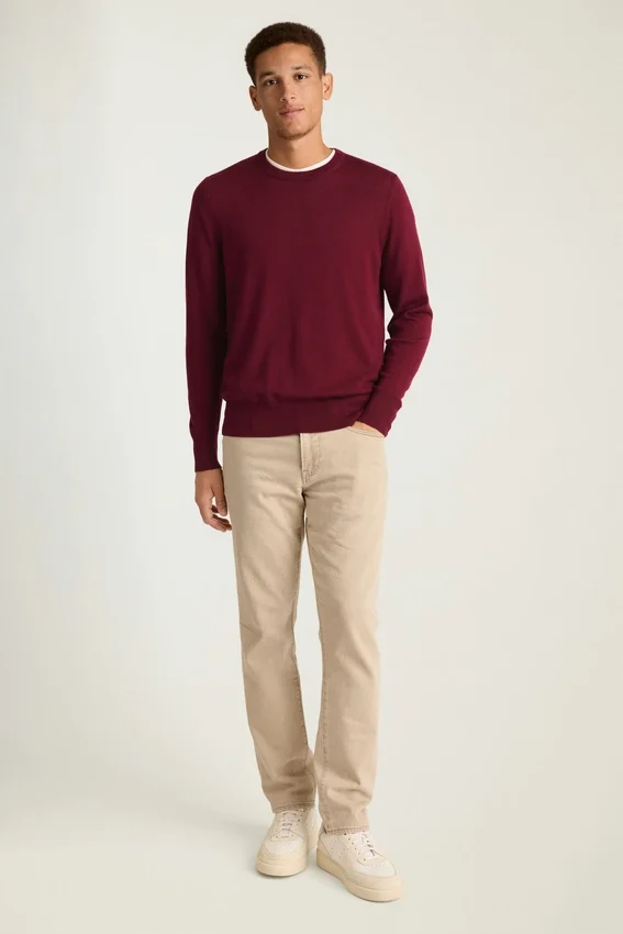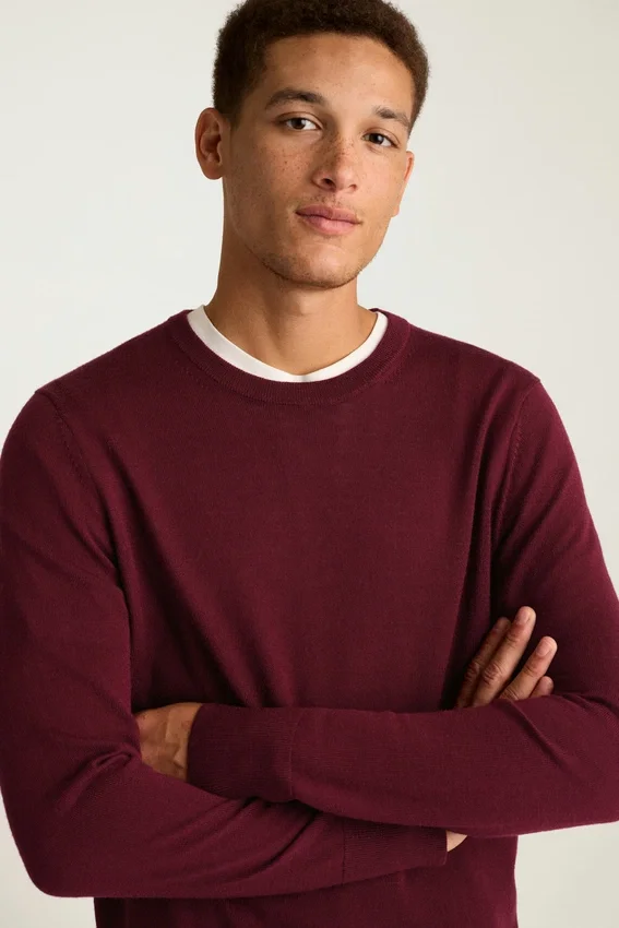 Lana merino leggera | Corpo in jersey | raffinato collo a costine 1×1 | Polsini e orlo più alti a costine 1×1 | Striscia a contrasto nascosta sul bordo interno del collo