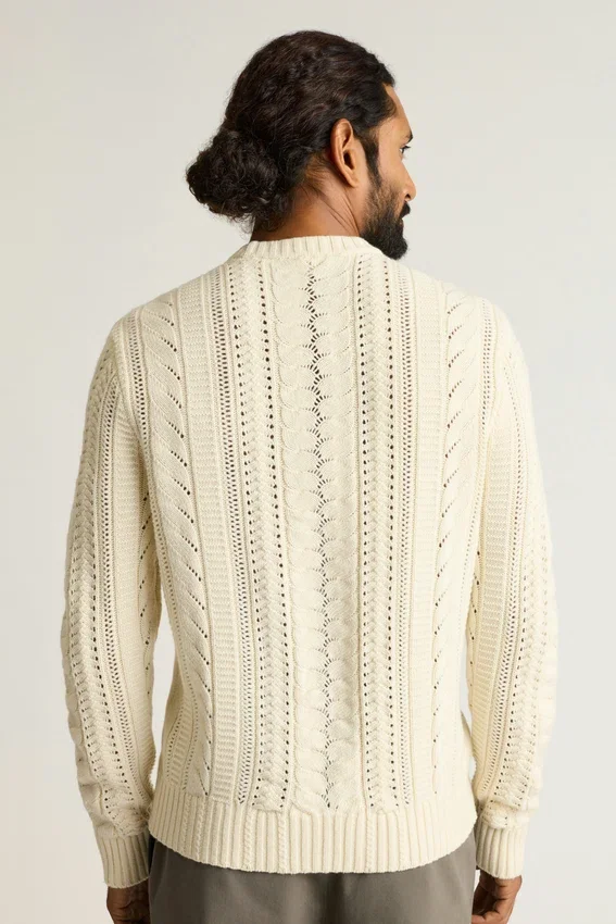 Questo maglione a trecce offre il giusto equilibrio tra morbidezza e calore.