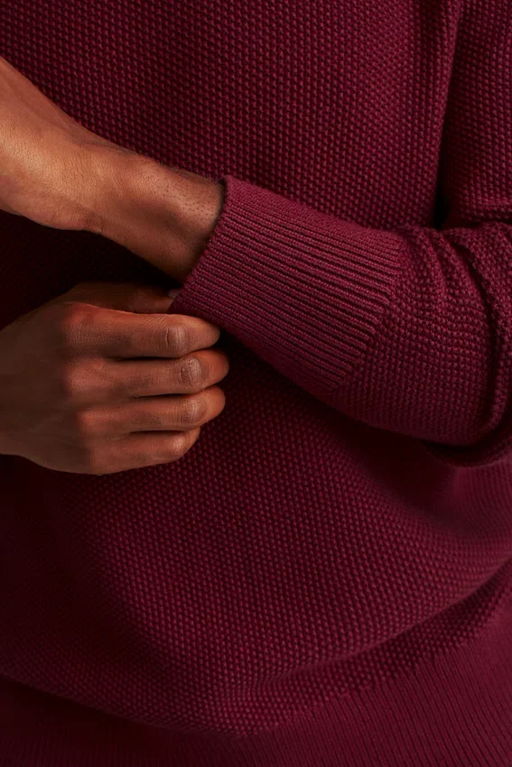 Filato di cotone morbido e traspirante con punto testurizzato su tutta la superficie | Peso medio | Polsini a costine 1X1 extra alti