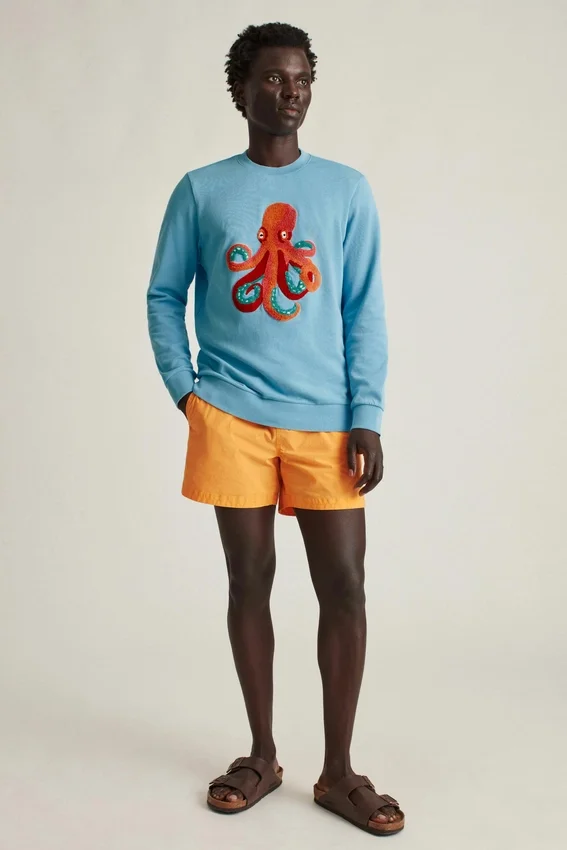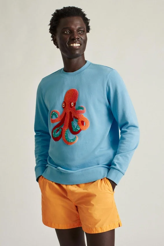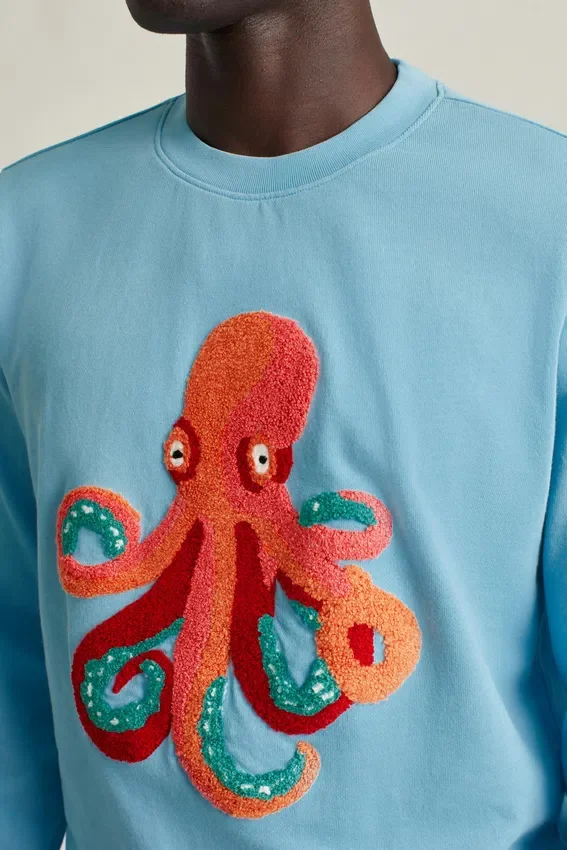 Cotone morbidissimo con polpo ricamato in ciniglia
