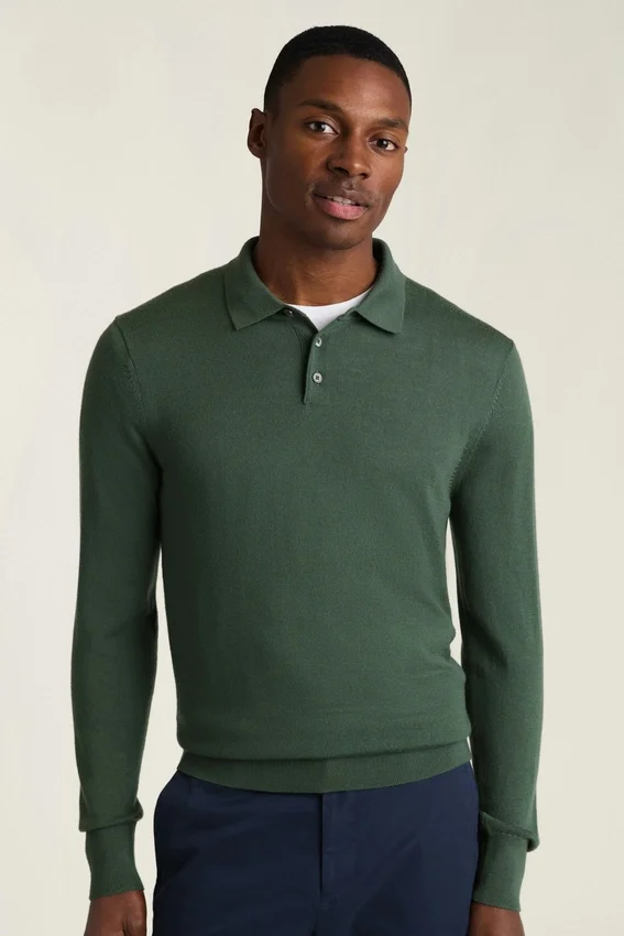 Polo a maniche lunghe in lana merino