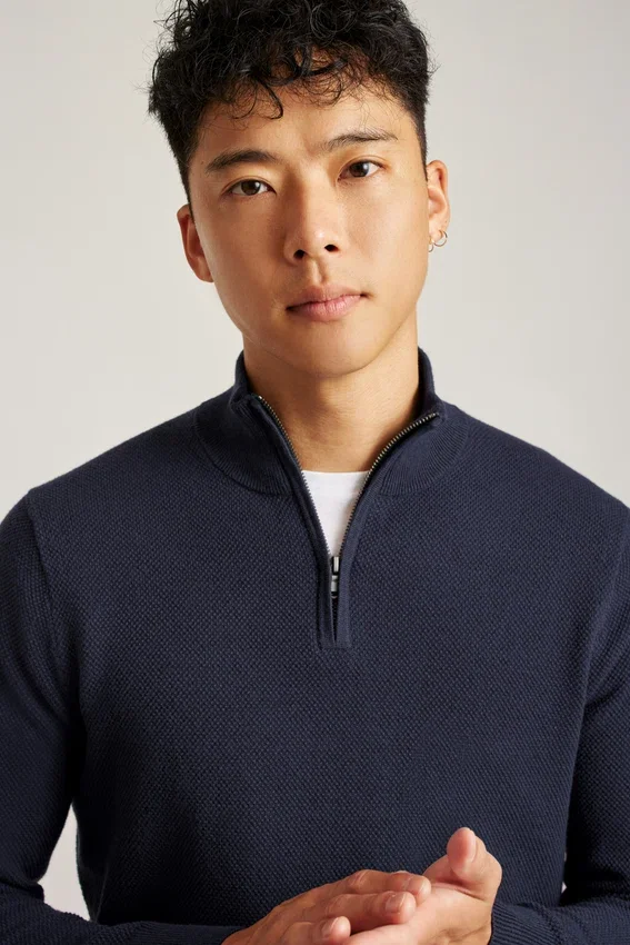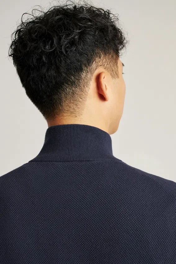 Misto cotone rinfrescante | Cuciture testurizzate su tutta la superficie | Collo a imbuto con chiusura a zip | Bordi a costine