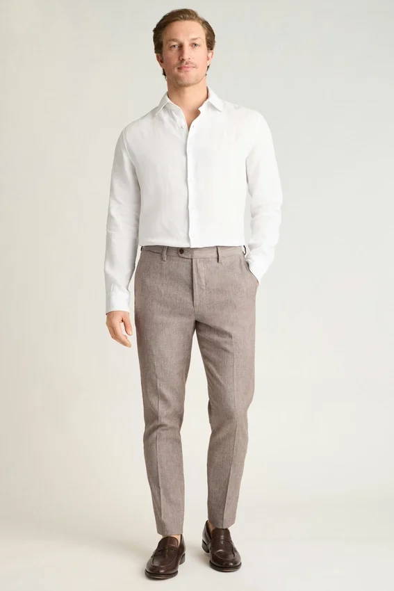 Il nostro chino più elegante in tessuti raffinati. Si abbina facilmente a un blazer o a una camicia elegante.