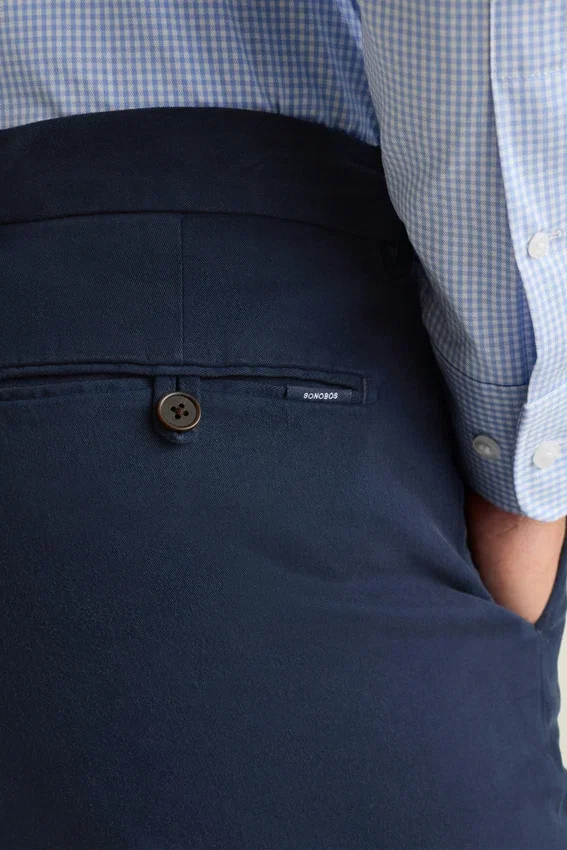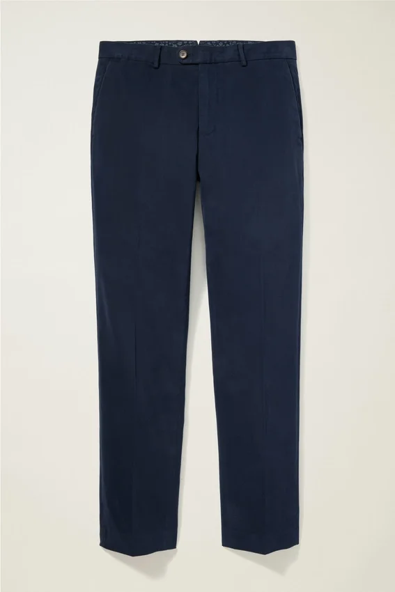 Tinto in capo per una maggiore morbidezza | Tessuto di lusso | Peso adatto a tutte le stagioni | Fascia in vita sagomata con pannello interno | Chiusura frontale con linguetta estensibile e bottone | Tasche posteriori a filetto con bottoni